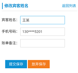 编辑并修改房间的客户资料,记录下客人的姓名和联系方式,利于今后的客户关系管理, 同时在客人不在房间,有事需要联系客人的时候也能方便的联系到客人